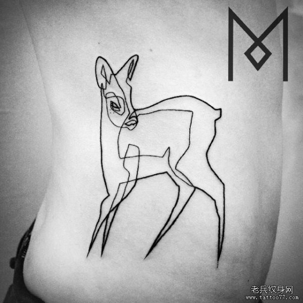 女生后腰纹身黑白灰风格抽象线条纹身图案