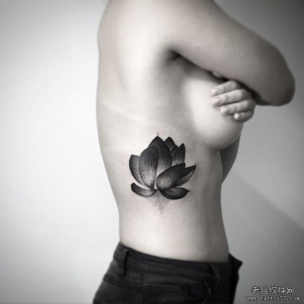 女性腰部莲花花纹刺青_腰部纹身图案大全_纹身图吧