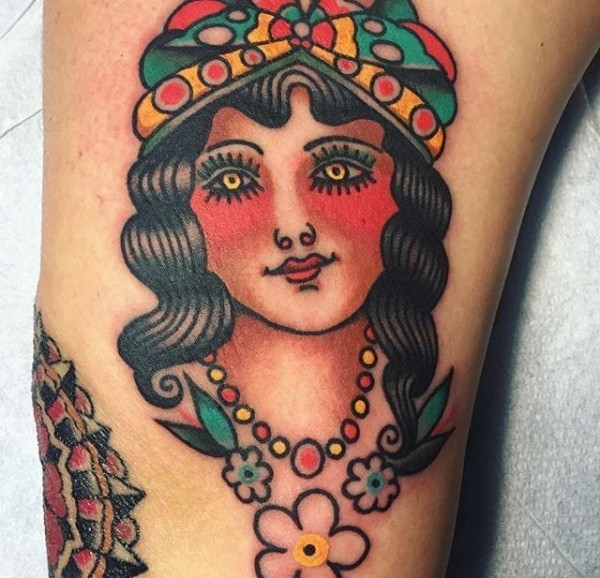 热闹的传统美女纹身图案来自迈克·苏亚雷斯