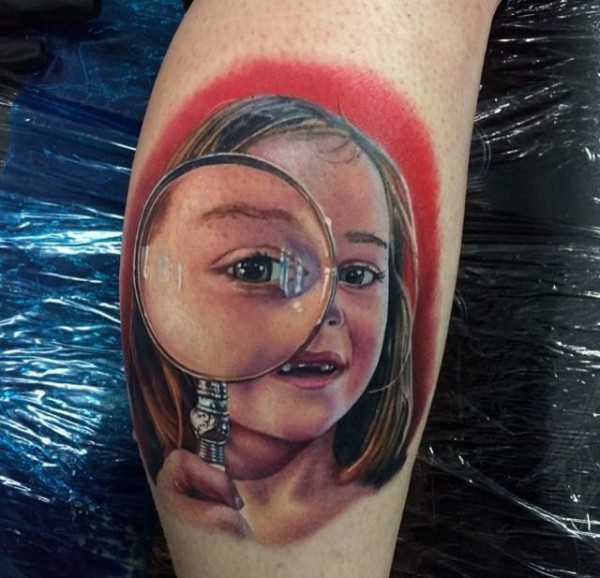 清纯女孩腿上可爱肖像纹身图片_肖像纹身图案大全_纹身图吧
