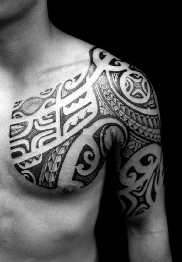 男性背部帅气的部落图腾纹身图案