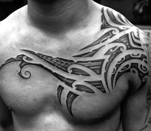 男性背部帅气的部落图腾纹身图案