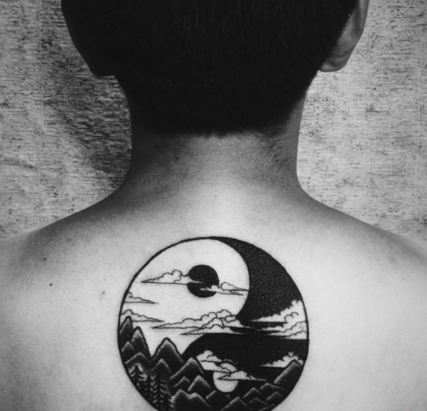 女孩正背上精致的阴阳八卦纹身图案