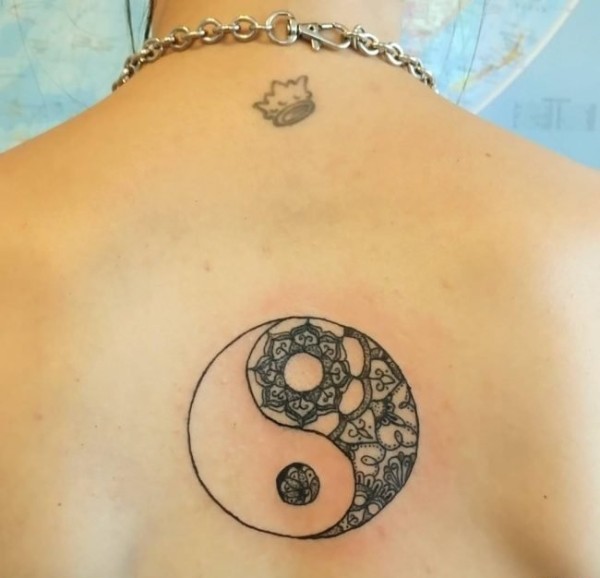 女孩正背上精致的阴阳八卦纹身图案