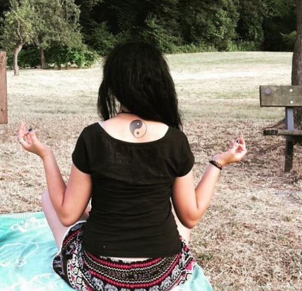 女孩正背上精致的阴阳八卦纹身图案