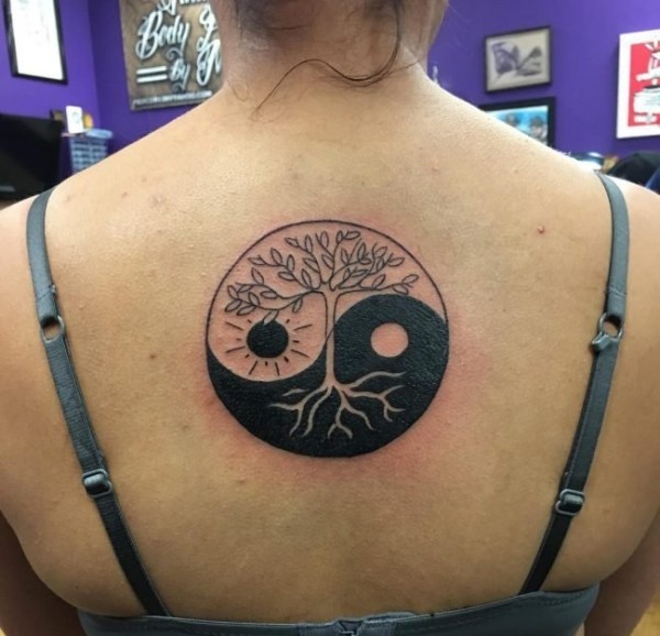 女孩正背上精致的阴阳八卦纹身图案