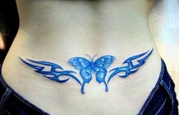 分享一款腰部时尚性感的蝶恋花纹身图案_腰部纹身图案大全_纹身图吧
