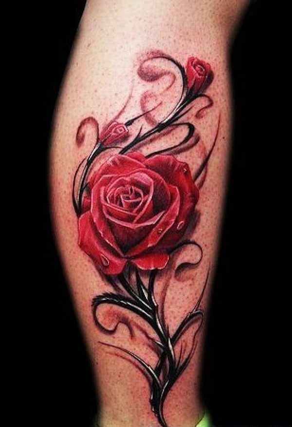 小腿侧部漂亮的玫瑰纹身图片欣赏