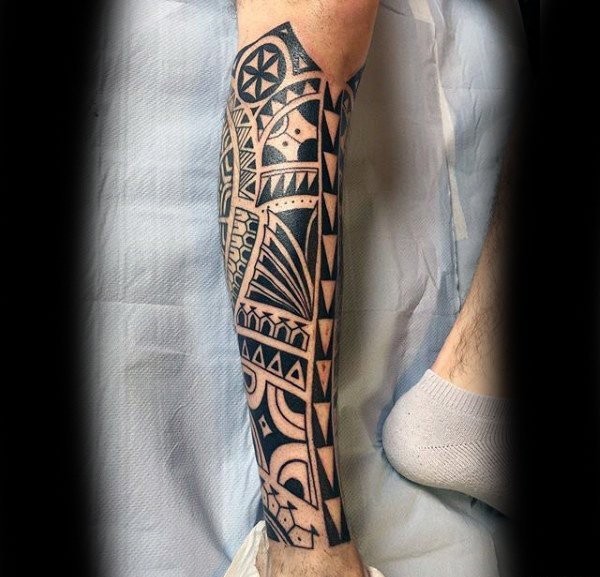男性小腿上的帅气的黑色部落图腾纹身图案