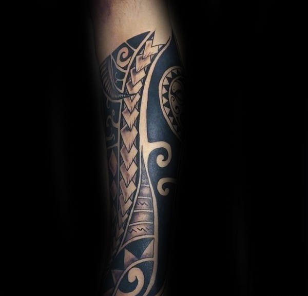 男性小腿上的帅气的黑色部落图腾纹身图案