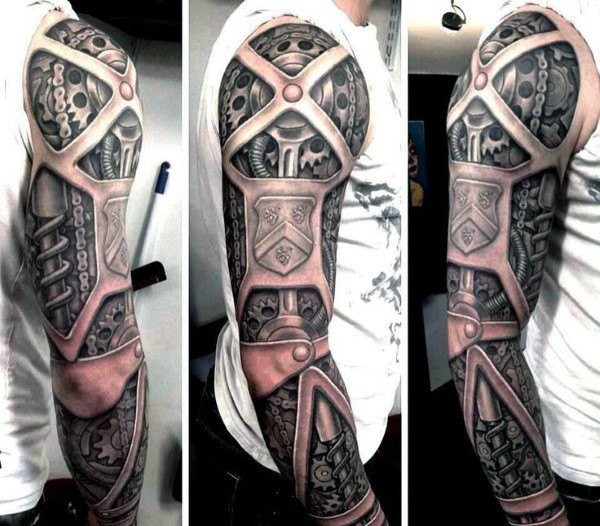 让人感觉无比有力的男性生物机械花臂纹身图案