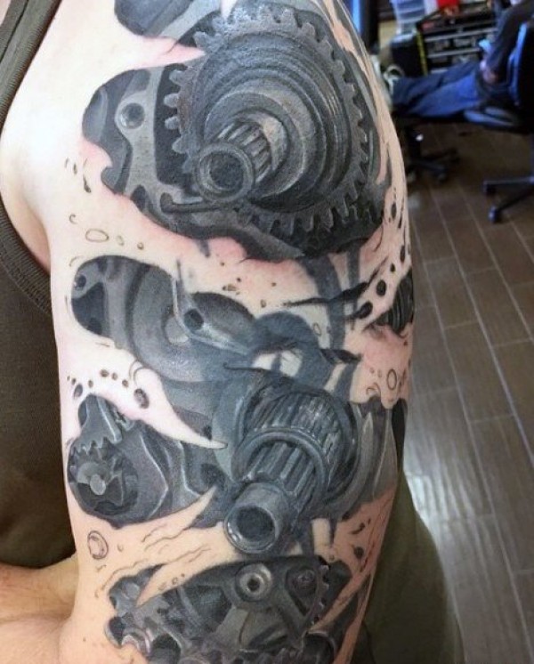让人感觉无比有力的男性生物机械花臂纹身图案