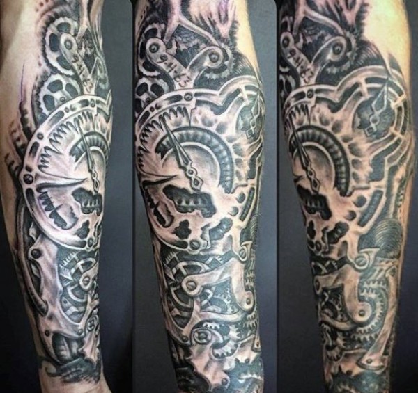 让人感觉无比有力的男性生物机械花臂纹身图案