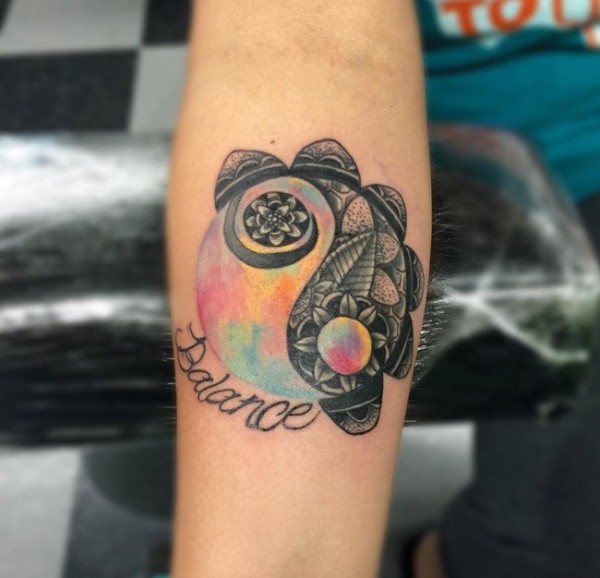 手臂上多款式样精美的阴阳八卦纹身图案