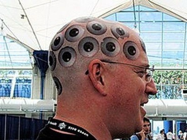 欧美男性头顶的密集眼睛纹身图