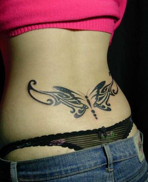 分享一款腰部时尚性感的蝶恋花纹身图案_腰部纹身图案大全_纹身图吧