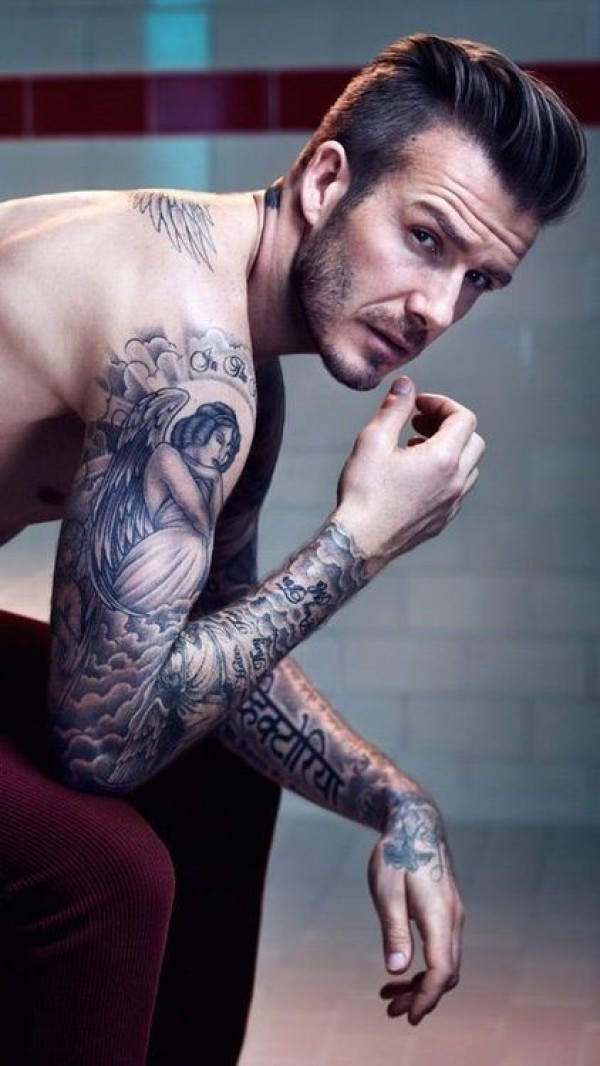 不老帅哥明星贝克汉姆手臂天使图案纹身