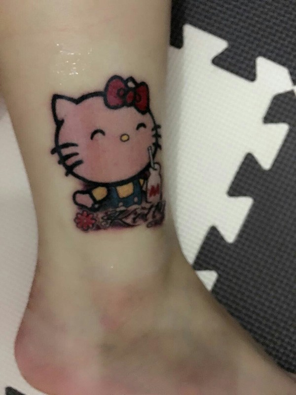 脚踝萌萌的hellokitty卡通彩绘纹身