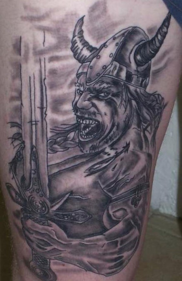 花腿纹身--一组大黑腿纹身图案作品欣赏