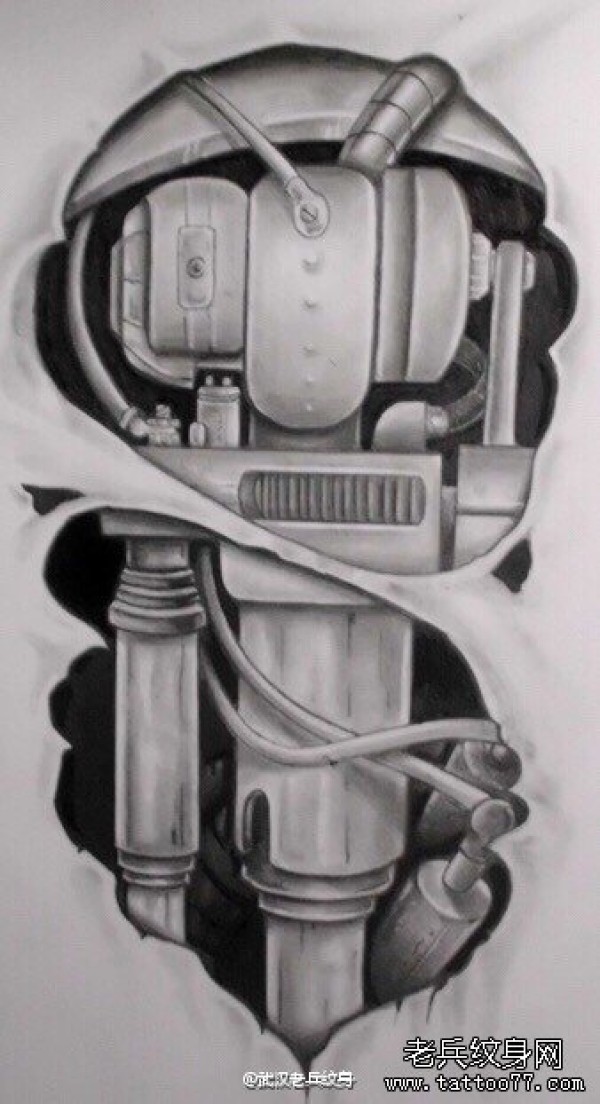 欧美tattoo3D机械纹身图案手稿