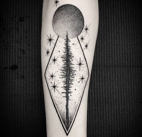 激发内心灵感的黑色的山水和星空宇宙纹身图案