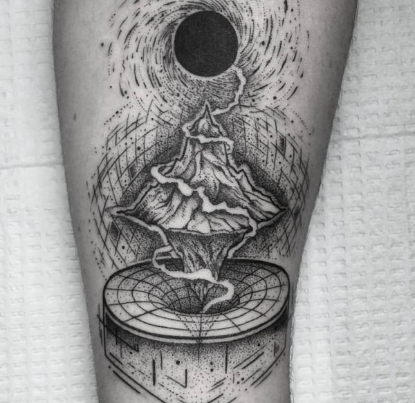 激发内心灵感的黑色的山水和星空宇宙纹身图案