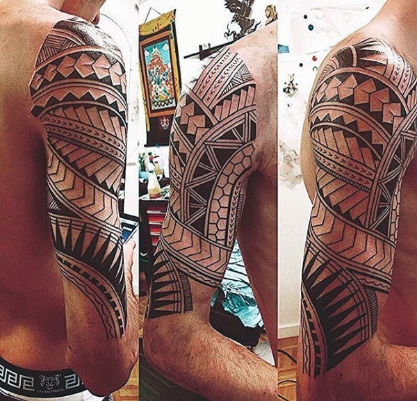 男性强壮有力的花臂部落图腾纹身图案