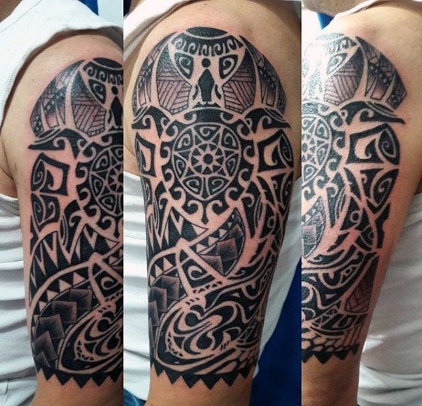 男性强壮有力的花臂部落图腾纹身图案