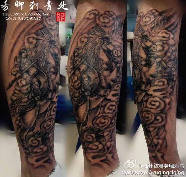 花腿纹身--一组大黑腿纹身图案作品欣赏