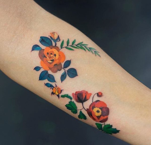 逼真的超现实主义花纹身图案来自纹身师莫拉莱斯