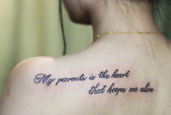 气质女生背部时尚英文纹身图案