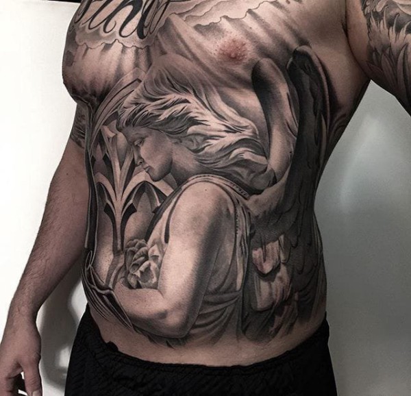 黑灰色现实主义风格大面积纹身图案