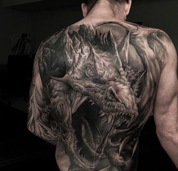 龙纹身手稿_一组老传统黑灰龙手稿纹身图案