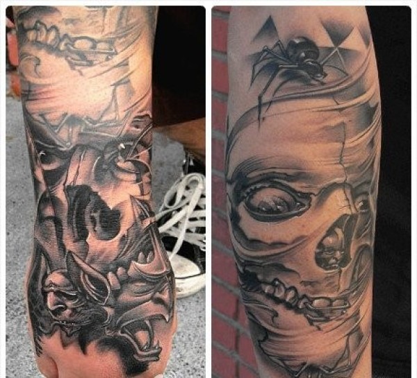个性手臂悲伤的骷髅纹身图案图案图片_骷髅纹身图案大全_纹身图吧