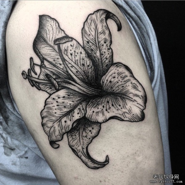 大臂欧美黑灰点刺花卉tattoo纹身图案