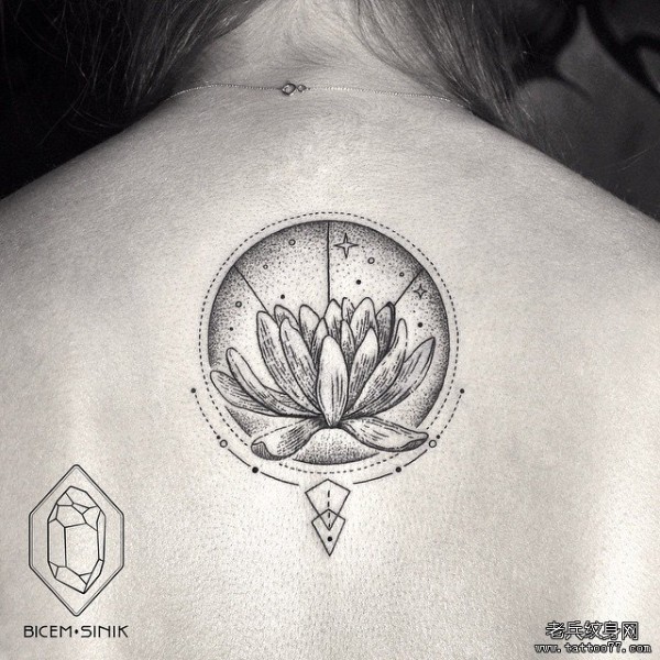 背部点刺星空莲花tattoo纹身图案