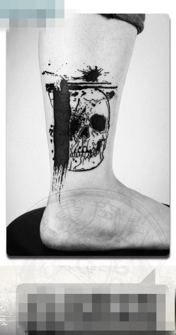 腿部潮流帅气的骷髅纹身图案
