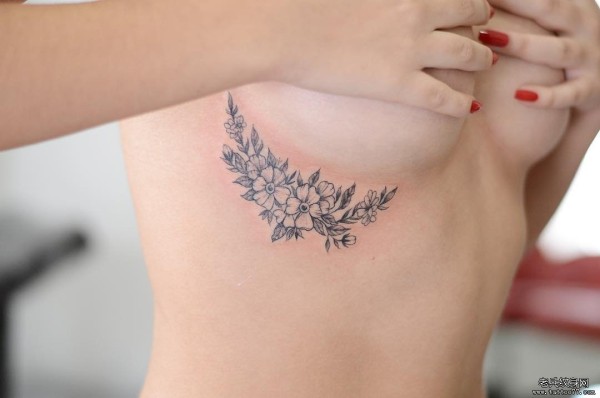 女性胸部小清新花卉性感纹身图案