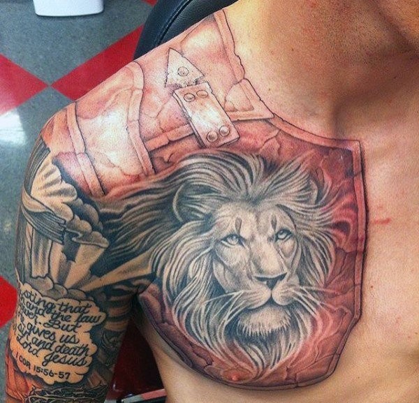 男性肩膀半甲风格霸气的盔甲纹身图案