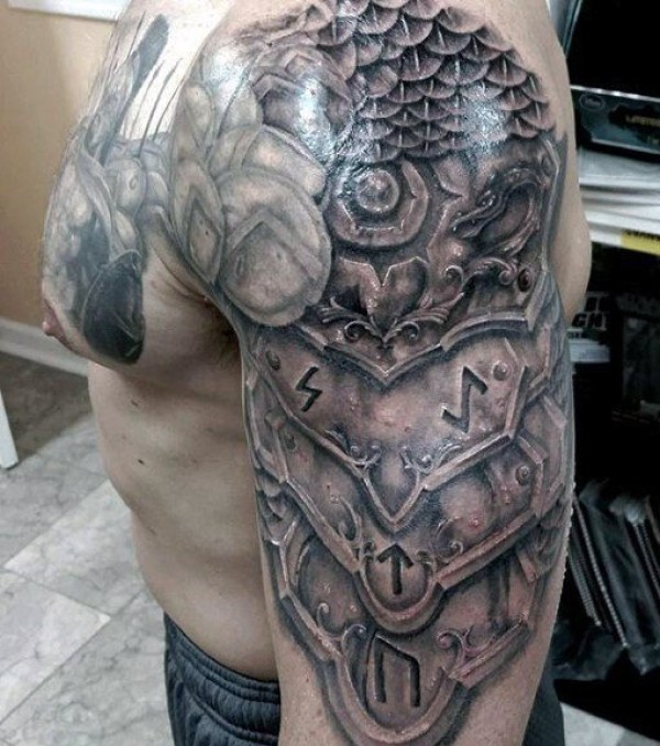 男性肩膀半甲风格霸气的盔甲纹身图案
