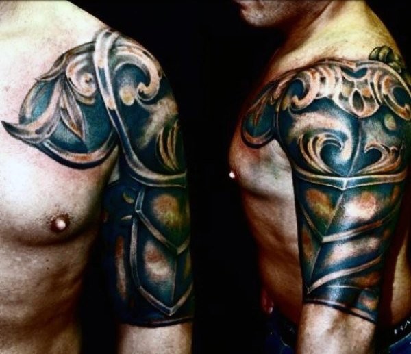男性肩膀半甲风格霸气的盔甲纹身图案