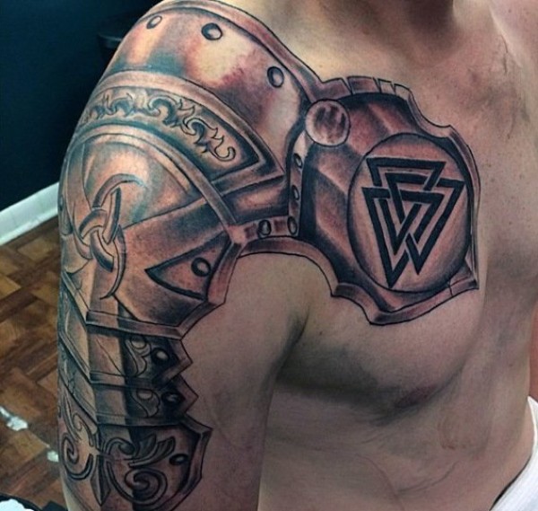 男性肩膀半甲风格霸气的盔甲纹身图案