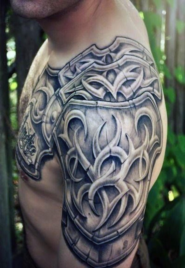男性肩膀半甲风格霸气的盔甲纹身图案