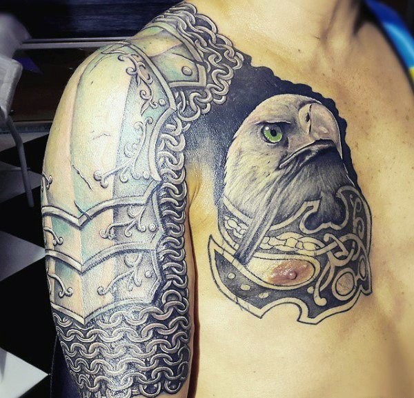 男性肩膀半甲风格霸气的盔甲纹身图案
