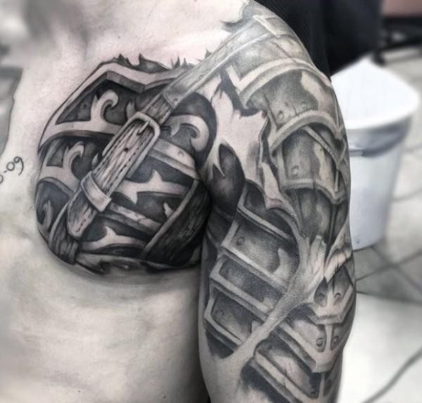 男性肩膀半甲风格霸气的盔甲纹身图案