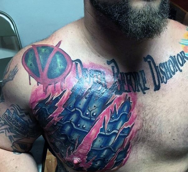 男性肩膀半甲风格霸气的盔甲纹身图案