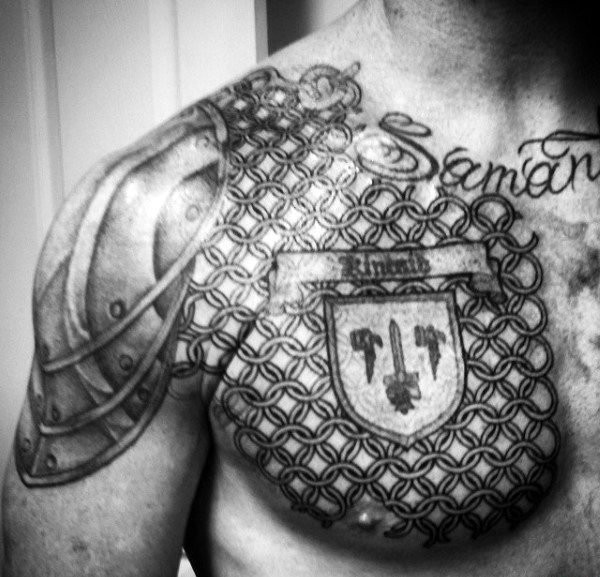 男性肩膀半甲风格霸气的盔甲纹身图案