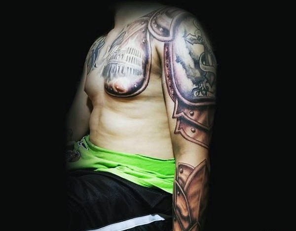 男性肩膀半甲风格霸气的盔甲纹身图案