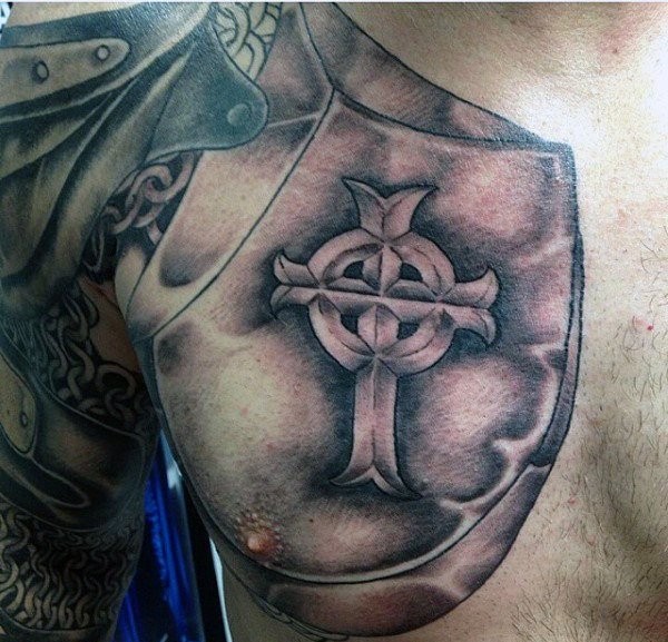 男性肩膀半甲风格霸气的盔甲纹身图案