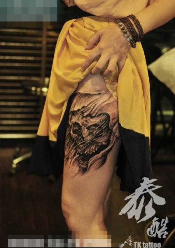 侧腰女骷髅刺青图案图片_骷髅纹身图案大全_纹身图吧